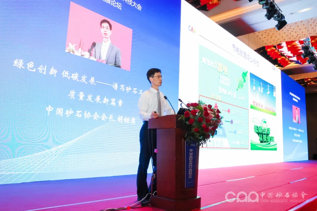 中國砂石協(xié)會(huì)會(huì)長胡幼奕作題為《綠色創(chuàng)新 低碳發(fā)展 譜寫砂石工業(yè)高質(zhì)量發(fā)展新篇章》的主旨演講。報(bào)告分析了當(dāng)前經(jīng)濟(jì)和砂石行業(yè)的形勢,國家和地方政府發(fā)布相關(guān)砂石的文件、國家“十四五”規(guī)劃和砂石市場需求,提出了砂石行業(yè)“碳達(dá)峰”“碳中和”的十大措施,著重講述了建設(shè)生態(tài)工業(yè)園區(qū)——砂石骨料4.0+第一二三產(chǎn)業(yè)融合發(fā)展的模式,延伸和擴(kuò)展產(chǎn)業(yè)鏈,最大限度的應(yīng)用石礦復(fù)綠和生態(tài)工業(yè)園區(qū)等碳匯措施,發(fā)揮砂石行業(yè)在“碳達(dá)峰”“碳中和”中的綜合優(yōu)勢。