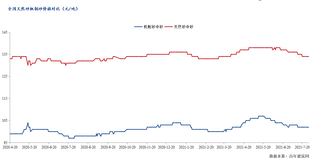 據統計自2020年起全國天然砂、機制砂價差明顯。與河砂相比,機制砂價格穩定且性價比極高,具有較大的價格優勢。天然砂開采過度容易造成河床下切,易發生坍塌。所以無論是從環保角度還是加工生產角度,機制砂都具有顯著地優勢。