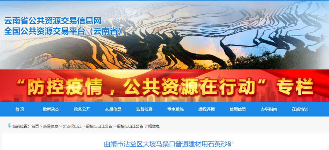 曲靖市公共資源交易中心采礦權掛牌出讓公告