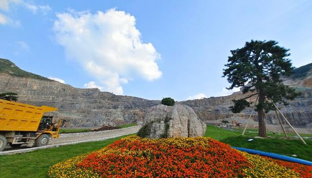 深秋,走進山東省淄博洪泉石料廠,映入眼簾的是草綠天藍,感受不到一點點礦山的痕跡,猶如進入一個大花園,孩童嬉戲、成人休閑,怡然自得。