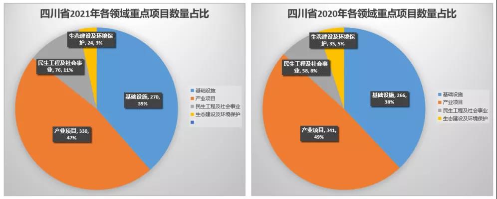四川省2020-2021年各領(lǐng)域重點項目數(shù)量占比