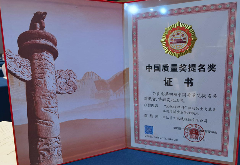 中信重工榮膺第四屆中國質量獎提名獎
