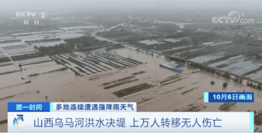 受連日降雨和上游來水的影響,山西省烏馬河清徐縣、祁縣段5日發生多處決堤,當地組織8個村莊約1.5萬人連夜撤離到安全地帶。
