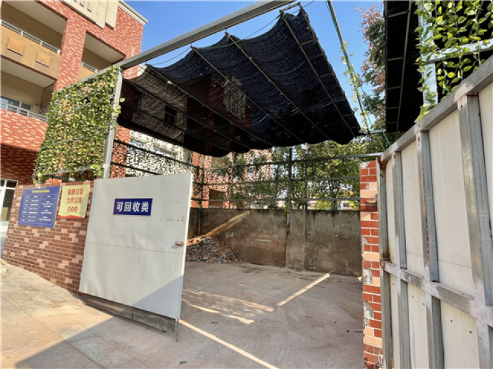 “綠葉”綴飾、開合式網狀頂棚、干凈紅磚圍砌……如果不是社區負責人介紹,乍一看,真認不出這竟是一個建筑垃圾堆放處。