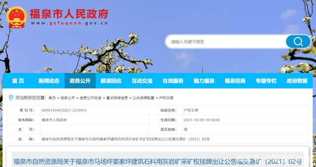 福泉市馬場坪姜家坪建筑石料用灰巖礦采礦權掛牌出讓