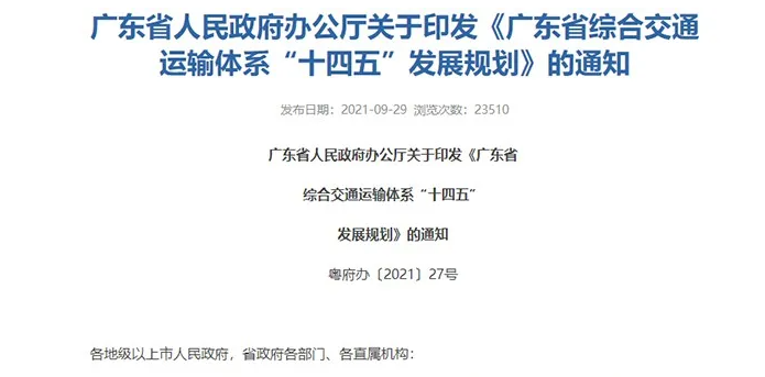 日前,廣東省人民政府辦公廳印發(fā)了《廣東省綜合交通運(yùn)輸體系“十四五”發(fā)展規(guī)劃》,表示“十四五”期間,廣東將緊扣“雙區(qū)”建設(shè)、“雙城”聯(lián)動(dòng)、“—核一帶一區(qū)”區(qū)域發(fā)展格局等重大戰(zhàn)略布局,打造“一中心三極點(diǎn)”綜合交通樞紐布局(以粵港澳大灣區(qū)樞紐集群為中心,汕頭、湛江、韶關(guān)為極點(diǎn)),完善“三橫四縱兩聯(lián)”省域交通主骨架,建設(shè)多向聯(lián)通的國(guó)內(nèi)外運(yùn)輸通道。