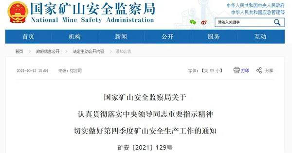 在此前的10月9日,國家礦山安全監(jiān)察局還專門印發(fā)了《關(guān)于認(rèn)真貫徹落實(shí)中央領(lǐng)導(dǎo)同志重要指示精神切實(shí)做好第四季度礦山安全生產(chǎn)工作的通知》,提出了切實(shí)增強(qiáng)做好礦山安全生產(chǎn)工作的責(zé)任感使命感緊迫感、嚴(yán)控重大安全風(fēng)險(xiǎn)、嚴(yán)厲打擊違法違規(guī)生產(chǎn)建設(shè)行為、嚴(yán)防超能力組織生產(chǎn)和壓緊壓實(shí)安全責(zé)任5點(diǎn)要求。