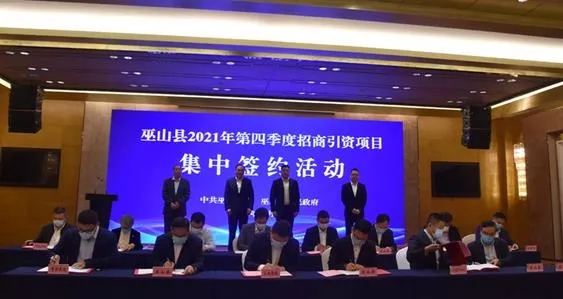 11月8日,重慶市巫山縣2021年第四季度招商引資項目集中簽約。華潤水泥控股有限公司黨委書記、總裁紀友紅先生作為簽約嘉賓代表致辭。