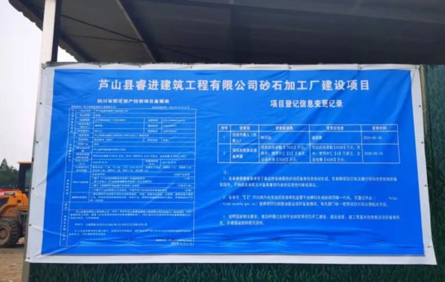 蘆山縣睿進礦產資源開發有限公司砂石加工廠建設項目正式開工,建于蘆山縣蘆陽街道大同村三灣頭;廠房、辦公房、門衛33300平方米,項目總投資額4200萬元。建成后將有效解決蘆山建筑材料貴、用料難等情況。