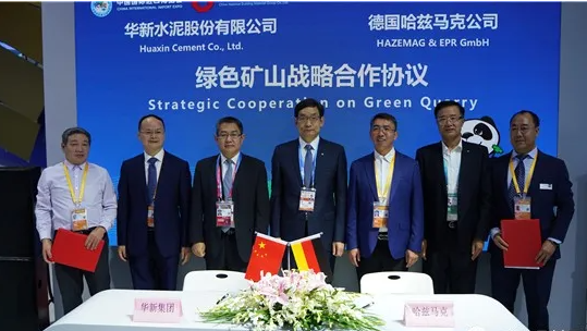 進(jìn)博會(huì)上哈茲馬克與華新水泥簽署綠色礦山戰(zhàn)略合作協(xié)議,哈茲馬克(北京)總經(jīng)理邊漢民與華新水泥(黃石)裝備制造有限公司總經(jīng)理陶守寶代表雙方簽字。雙方此次是在綠色礦山破碎系統(tǒng)和骨料機(jī)制砂生產(chǎn)領(lǐng)域開(kāi)展合作。華新將在其新礦山系統(tǒng)和新骨料機(jī)制砂項(xiàng)目中優(yōu)先選擇哈茲馬克的
