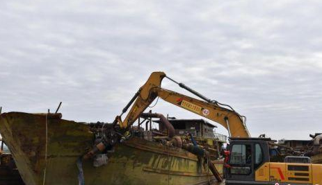 廣西海警嚴打非法采砂活動 集中拆解35艘非法采砂船舶