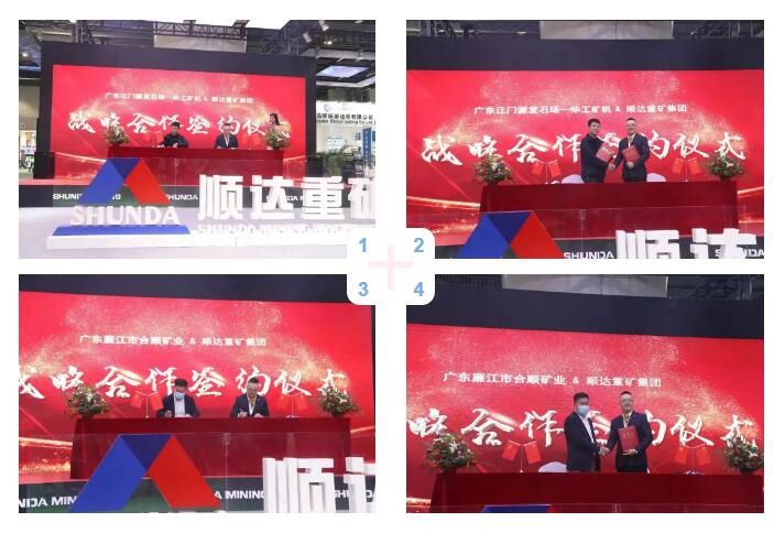 展會(huì)期間,集團(tuán)分別與廣東東升實(shí)業(yè)集團(tuán)有限公司、清遠(yuǎn)市清新區(qū)谷城礦業(yè)開(kāi)發(fā)投資有限公司、廣東長(zhǎng)亨石業(yè)有限公司、云浮市恒豐石業(yè)有限公司、廣東惠州市福昊投資有限公司、廣東廉江市合順礦業(yè)、廣東江門源發(fā)石場(chǎng)-華工礦機(jī)六家企業(yè)達(dá)成戰(zhàn)略簽約,精誠(chéng)合作、攜手共贏。