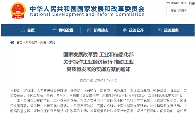 工業(yè)是國民經(jīng)濟的主體,工業(yè)穩(wěn)則經(jīng)濟穩(wěn)。近日,國家發(fā)展改革委、工業(yè)和信息化部發(fā)布《關(guān)于振作工業(yè)經(jīng)濟運行 推動工業(yè)高質(zhì)量發(fā)展的實施方案的通知》,以加快構(gòu)建新發(fā)展格局,做好宏觀政策預(yù)調(diào)微調(diào)和跨周期調(diào)節(jié),精準打通產(chǎn)業(yè)鏈供應(yīng)鏈堵點卡點,挖掘市場需求潛力,優(yōu)化發(fā)展環(huán)境,激發(fā)市場主體活力,振作工業(yè)經(jīng)濟運行,推動工業(yè)高質(zhì)量發(fā)展。