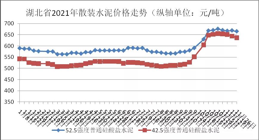 監測數據顯示:11月份,42.5強度普通硅酸鹽水泥、42.5強度