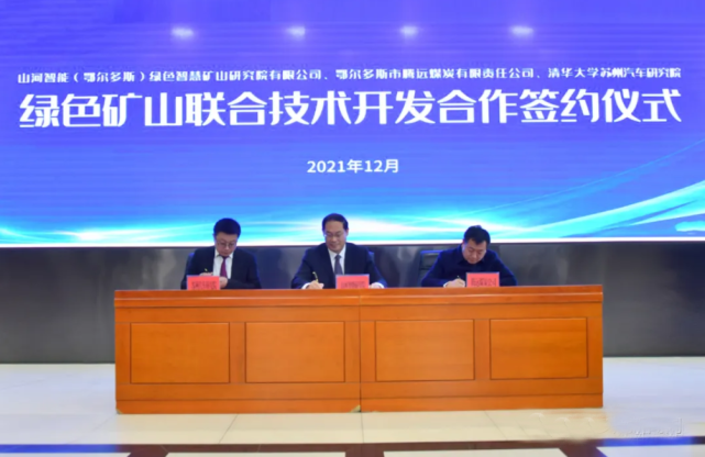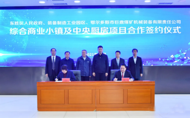 12月21日,東勝區舉行山河智能裝備股份有限公司鄂爾多斯綠色智慧礦山研究院項目、巨鼎綜合商業小鎮及中央廚房項目、綠色礦山聯合技術開發合作項目簽約儀式。