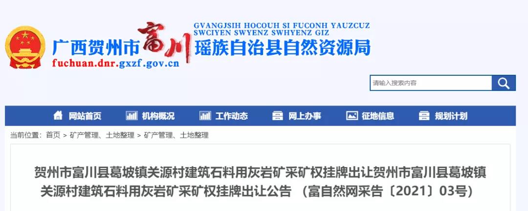 獲悉,廣西省賀州市公共資源交易中心掛牌交易方式公開出讓建筑石料用灰巖采權。資源量為3868.45萬噸,設計生產規模122萬噸/年,起始價:5450萬元。