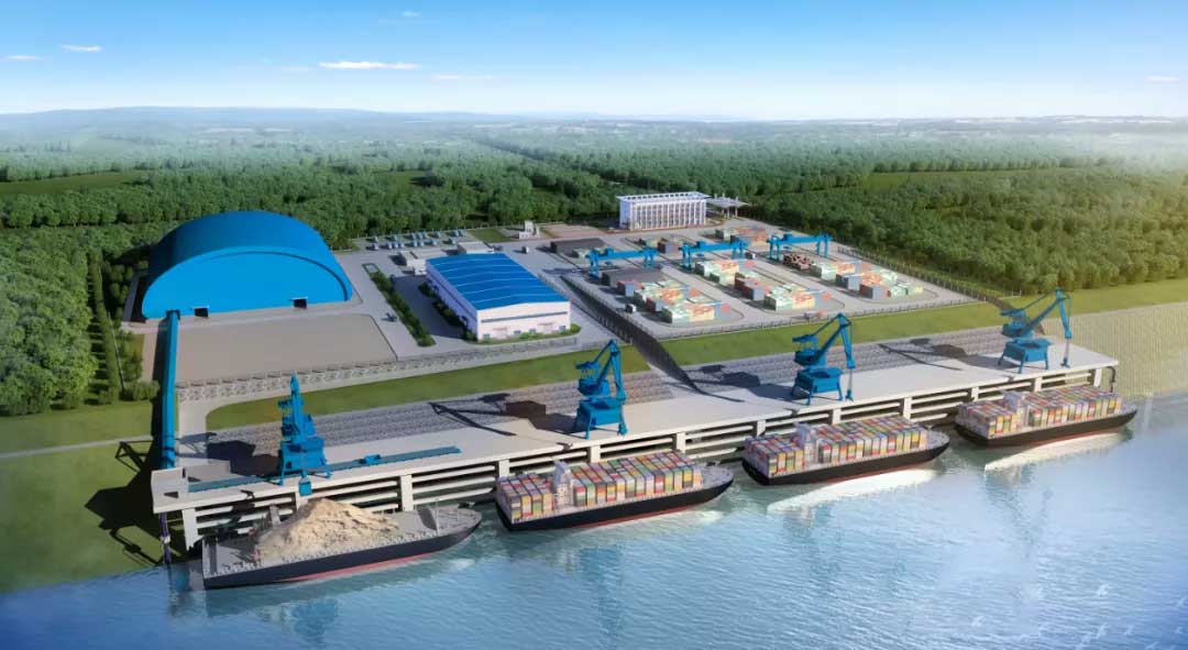 該項目位于漢江中游宜城市西北部的小河鎮,一期工程建設泊位4個,其中散貨泊位2個;件雜貨泊位2個,設計通過能力233萬噸,以件雜貨、散貨(含