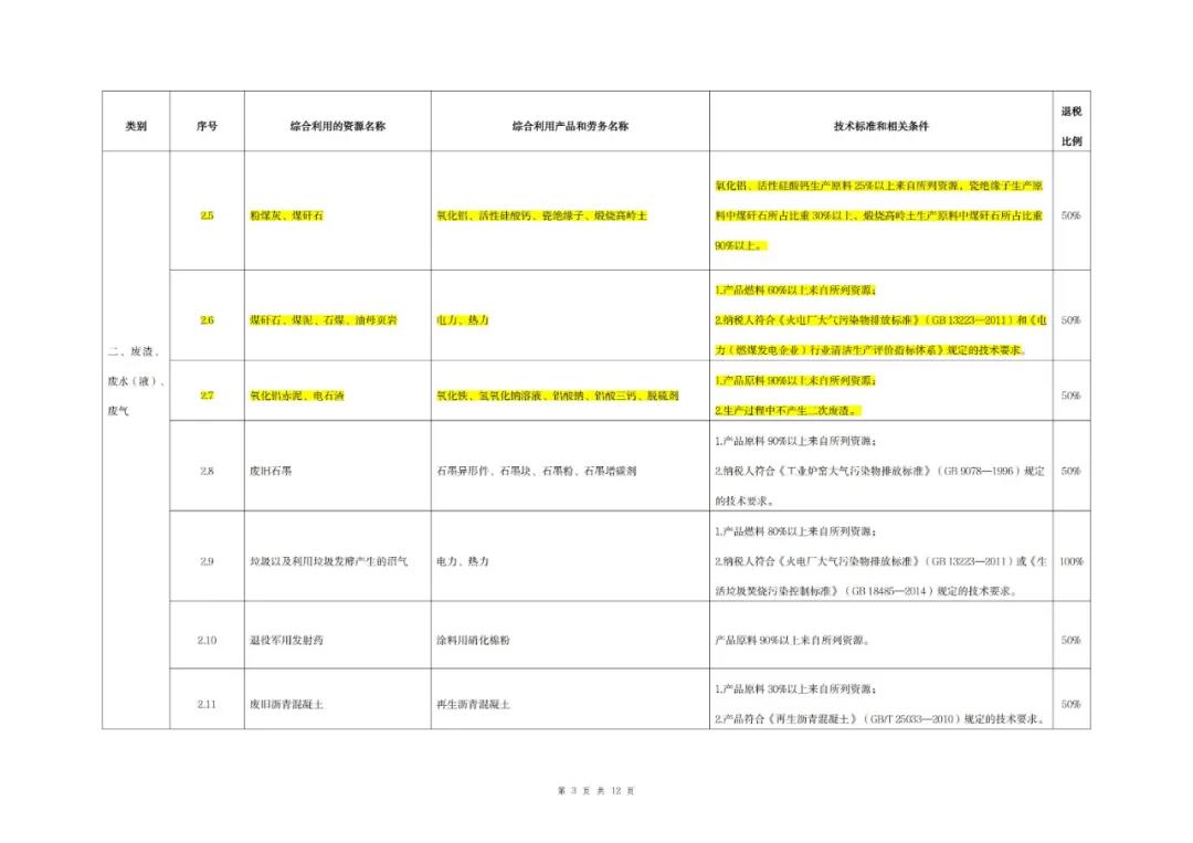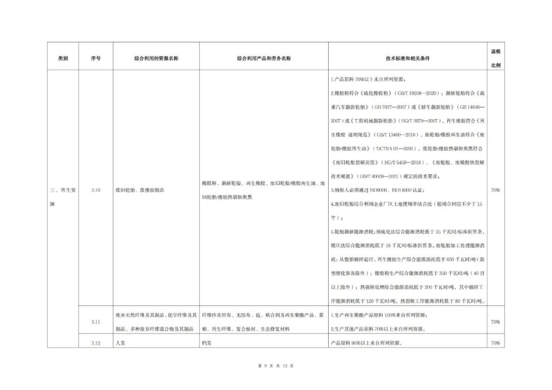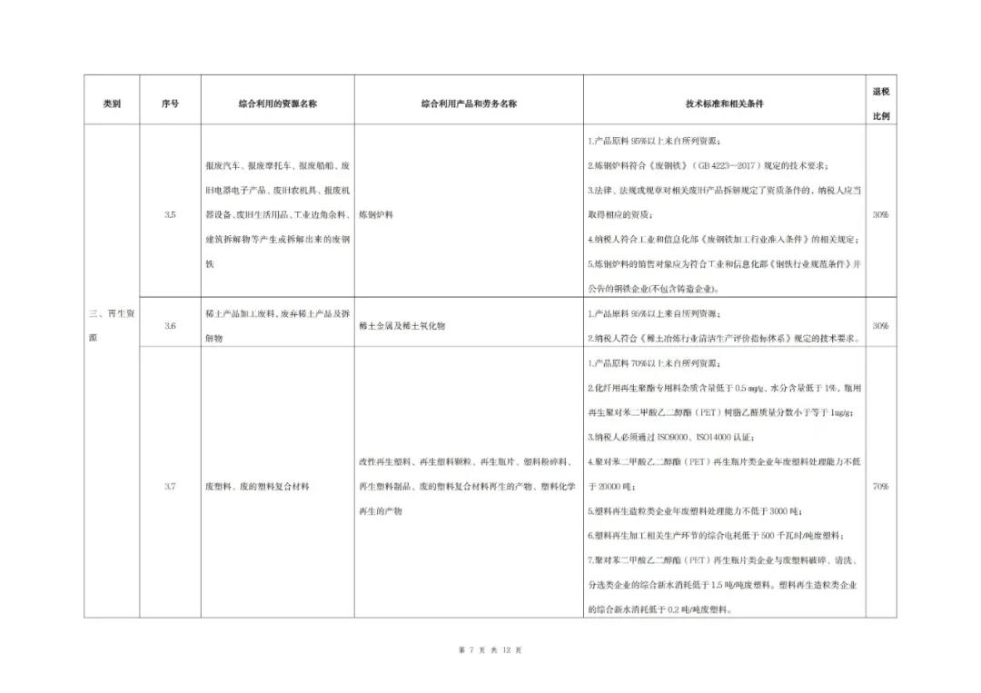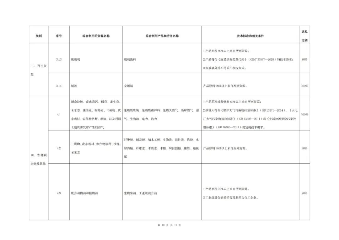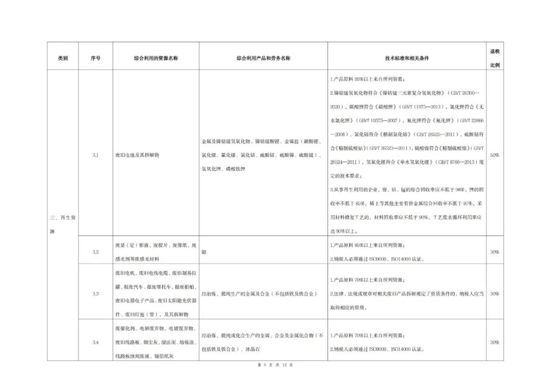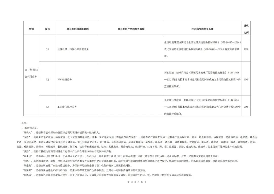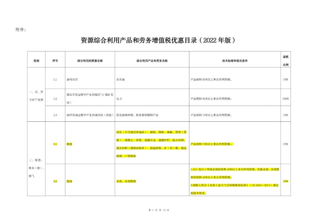 (一)綜合利用的資源名稱、綜合利用產品和勞務名稱、技術標準和相關條件、退稅比例等按照本公告所附《資源綜合利用產品和勞務增值稅優惠目錄(2022年版)》)(以下稱《目錄》)的相關規定執行。