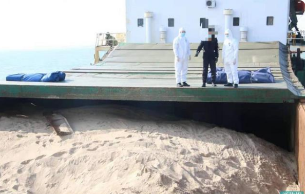 當日9時許,汕頭海警局執法艇在汕頭海門港對開海域開展 " 獵砂 " 專項整治行動時,發現一艘疑似非法運輸海砂的船舶,執法艇當即前往查緝。經查,該船舶無法提供該批海砂的合法證件,船上海砂來源不明。目前,案件正在進一步調查處理中。