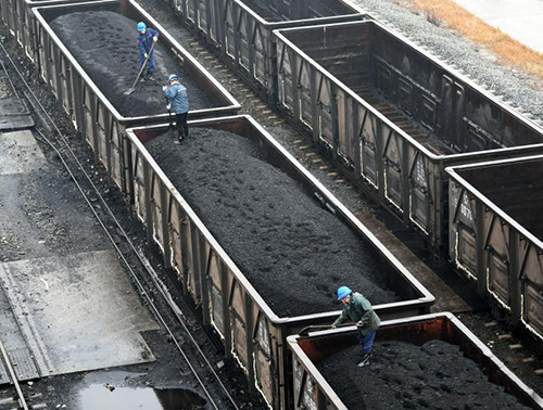 資料圖:工人將電煤裝運至車輛上。 胡國林 攝