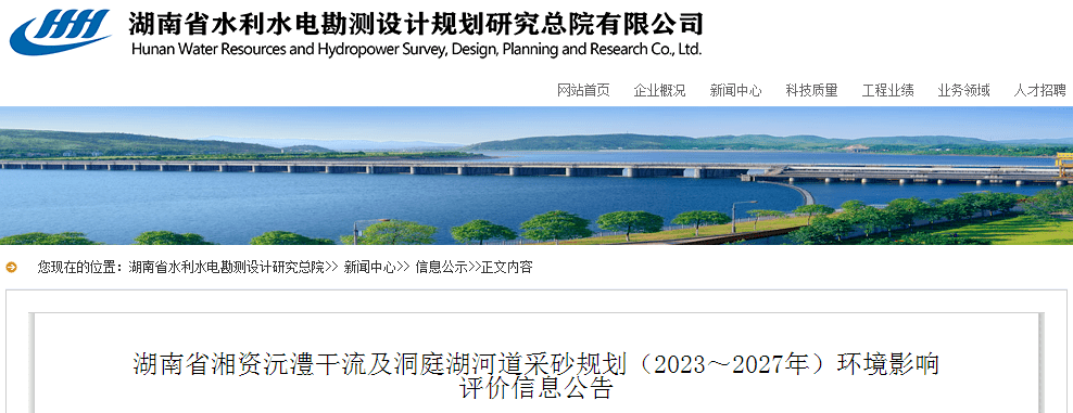 據中國砂石協會了解,2022年3月7日,湖南省水利廳、湖南省水利水電勘測設計規劃研總院有限公司在前期工作的基礎上,發布了《湖南省湘資沅澧干流及洞庭湖河道采砂規劃(2023~2027年)環境影響評價信息公告》(以下簡稱《環評公告》)。