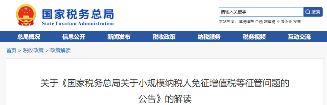 關(guān)于《國家稅務(wù)總局關(guān)于小規(guī)模納稅人免征增值稅等征管問題的公告》的解讀2022年3月5日,李克強(qiáng)總理在《政府工作報告》中明確提出“對小規(guī)模納稅人階段性免征增值稅”。3月24日,財政部、稅務(wù)總局制發(fā)《財政部?稅務(wù)總局關(guān)于對增值稅小規(guī)模納稅人免征增值稅的公告》(2022年第15號),為確保相關(guān)政策順利實施,稅務(wù)總局制發(fā)本公告,就相關(guān)征管問題進(jìn)行了明確。