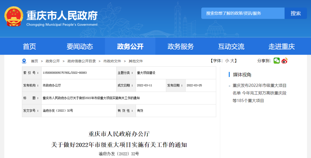 3月26日,重慶市人民政府網(wǎng)日前發(fā)布消息,近日,重慶市政府辦公廳印發(fā)《關(guān)于做好2022年市級(jí)重大項(xiàng)目實(shí)施有關(guān)工作的通知》(以下簡(jiǎn)稱《通知》),《通知》發(fā)布了2022年市級(jí)重大項(xiàng)目名單。