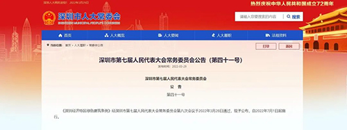 《深圳經(jīng)濟(jì)特區(qū)綠色建筑條例》經(jīng)深圳市第七屆人民代表大會常務(wù)委員會第八次會議于2022年3月28日通過,現(xiàn)予公布,自2022年7月1日起施行。