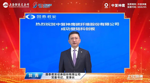 國泰君安黨委書記、董事長賀青在致辭中對中復神鷹的成功上市表達了祝賀,他希望中復神鷹能夠充分把握本次上市機遇,借助資本市場力量,為廣大投資者創(chuàng)造豐厚回報。并表示國泰君安將繼續(xù)當好資本市場“看門人”,切實履行保薦義務,做好中復神鷹上市后的持續(xù)督導和綜合服務工作,助力中復神鷹建設成為規(guī)范運作的上市公司模范。