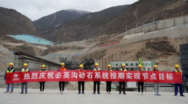 必英溝砂石、混凝土兩大系統于2021年9月20日開工。自開工以來,項目全體成員團結一致、砥礪奮進,缺氧不缺精神,倒排施工計劃,嚴格按照砂石、混凝土系統專項施工方案組織施工。克服了場地及地形限制、安裝難度大、建設工期緊、森林消防嚴峻、設備材料進場受阻、高原工作效率較低等困難。經過近6個月的施工建設,順利完成了土建施工、金結制安、設備安裝、系統聯動重載試運行等節點目標。