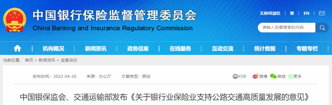 4月20日,中國銀保監(jiān)會、交通運輸部發(fā)布《關(guān)于銀行業(yè)保險業(yè)支持公路交通高質(zhì)量發(fā)展的意見》提出,支持保險公司參與公路交通建設(shè)。充分發(fā)揮保險資金規(guī)模大、期限長、穩(wěn)定性高的優(yōu)勢,鼓勵保險機構(gòu)通過債權(quán)、股權(quán)、股債結(jié)合、資產(chǎn)支持計劃和私募基金等形式,參與重大公路交通基礎(chǔ)設(shè)施、新型交通基礎(chǔ)設(shè)施等項目建設(shè)。鼓勵保險機構(gòu)根據(jù)不同類型項目特點,推出合適的公路交通項目災(zāi)毀保險產(chǎn)品和服務(wù),積極參與公路災(zāi)毀保險等業(yè)務(wù)。鼓勵保險資金在風(fēng)險可控前提下通過購買地方政府債券方式合法合規(guī)參與公路發(fā)展。