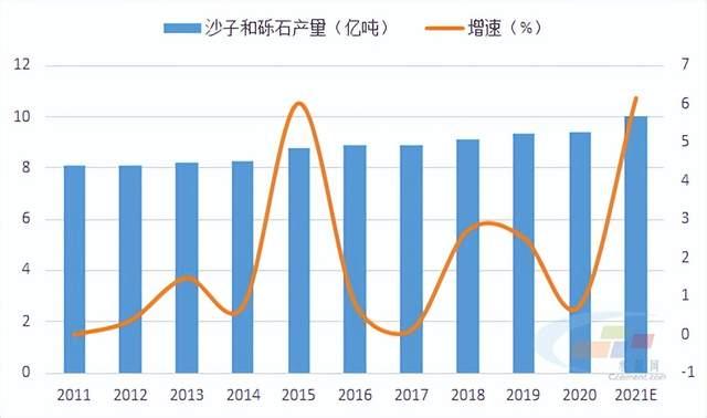 圖2-3:2021年建筑用沙子和礫石產量及增速