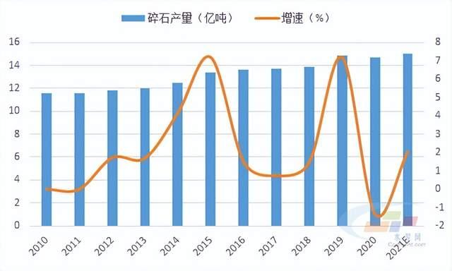 2021年,美國碎石產量約15億噸,較2020年的14.7億噸增長2.04%,價值超過190億美元。由于私人和公共建筑市場的增長,2021年碎石需求環(huán)比增加4.58%,達到16億噸。