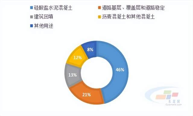 混凝土骨料,21%用作道路基層、覆蓋層和道路穩(wěn)定,13%用作建筑回填,12%用作瀝青混凝土骨料和其他瀝青混合料,8%用作其他用途(混凝土產品、過濾、高爾夫球場維護、石膏和噴射砂、鐵路壓載物、道路穩(wěn)定、屋頂顆粒和冰雪控制等)。