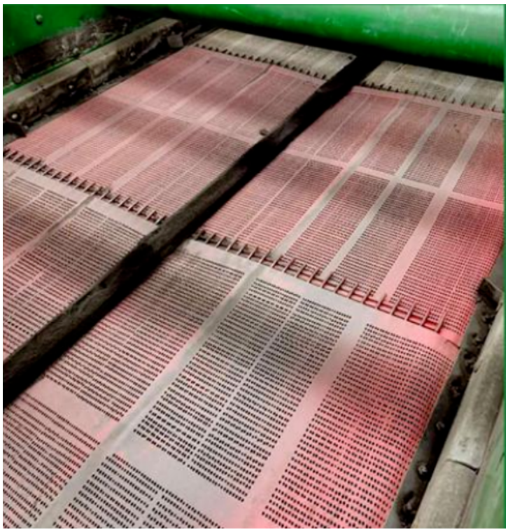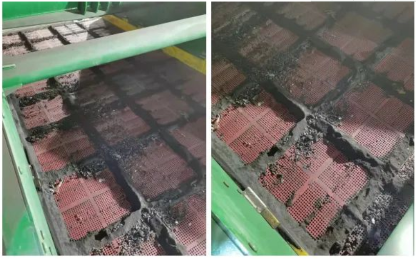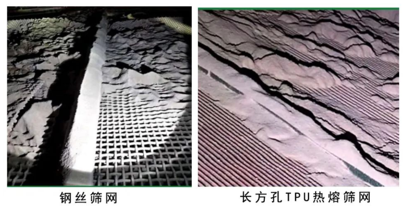 改為長(zhǎng)方孔TPU熱熔篩網(wǎng)篩分,仍存在堵孔情況,無(wú)法解決干法篩分難題。