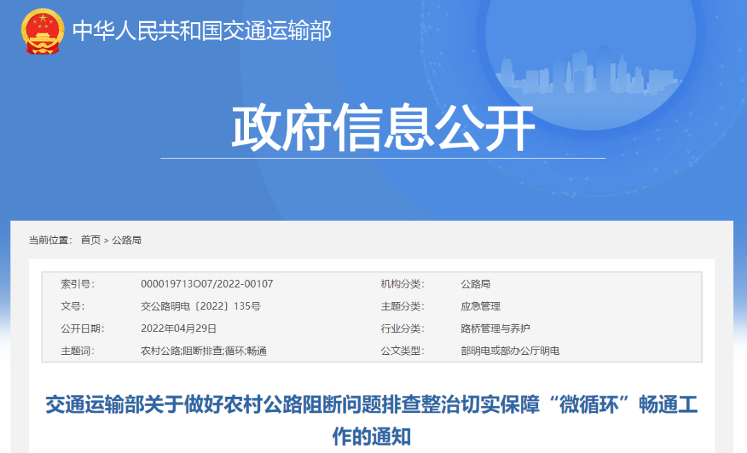 交通運輸部關于做好農村公路阻斷問題排查整治切實保障“微循環”暢通工作的通知