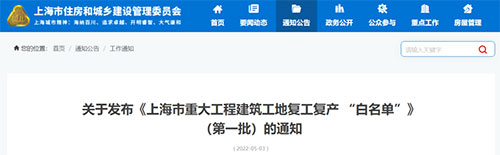 根據(jù)《上海市重大工程建筑工地復(fù)工復(fù)產(chǎn)疫情防控指引(1.0版)》(滬肺炎防控辦〔2022〕524號)文件要求,經(jīng)研究,現(xiàn)發(fā)布《上海市重大工程建筑工地復(fù)工復(fù)產(chǎn)“白名單”》(第一批)。