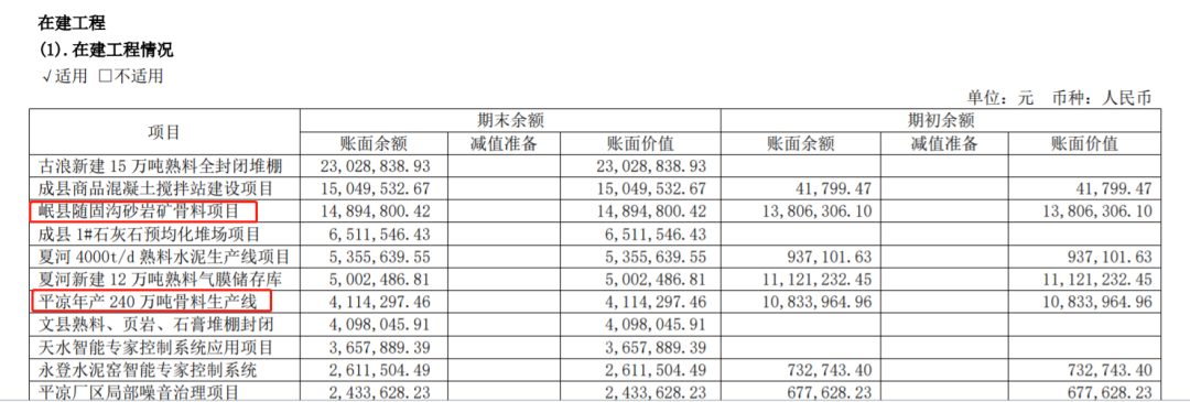目前祁連山水泥集團有岷縣隨固溝砂巖礦骨料項目以及平涼年產240萬噸骨料生產線2個在建工程。