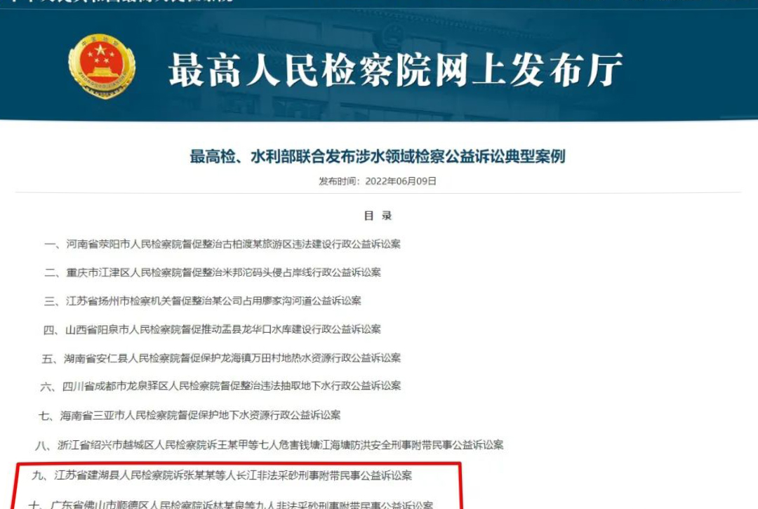 6月9日上午,最高人民檢察院、水利部聯合召開新聞發布會,會上發布涉水領域檢察公益訴訟典型案例,包含兩起非法采砂案件,盜采江砂、河砂超3000萬噸,生態環境損害評估數額近30億元。