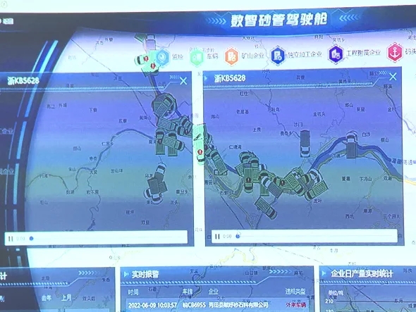 在青田縣砂石料工作中心,我們可以看到,大屏幕上,一輛輛運砂車和砂場人員及周邊情況清晰在目,“數智砂管”應用正如“哨兵”一樣密切監視著砂石企業和運砂車輛。