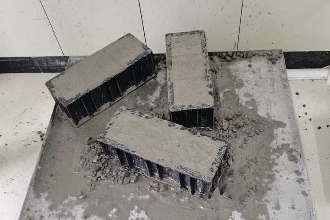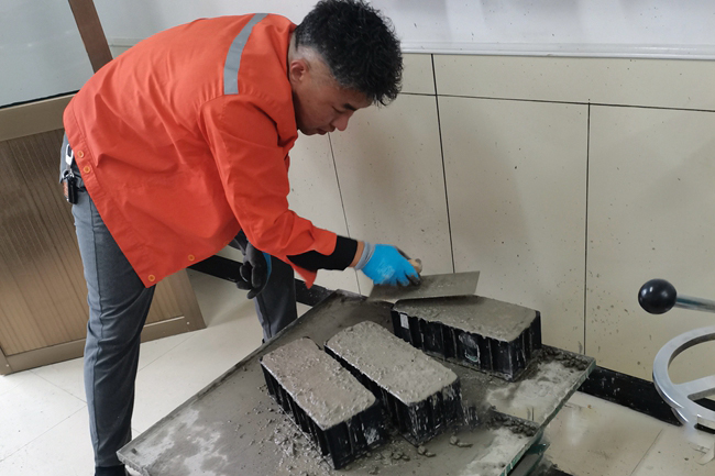 試驗人員正在用垃圾焚燒殘留的固體廢渣制作水泥混凝土試件。