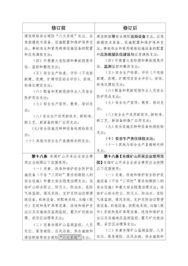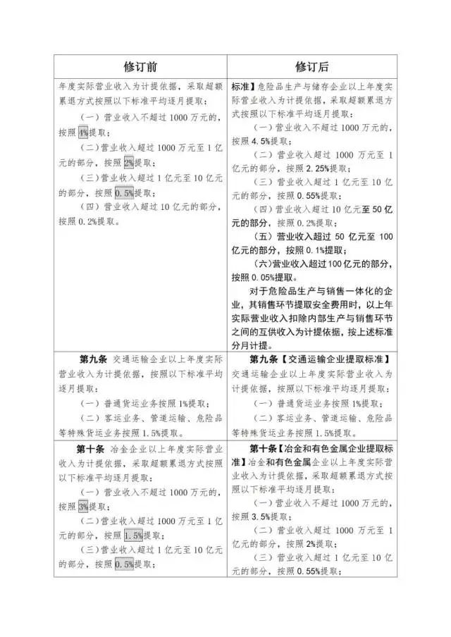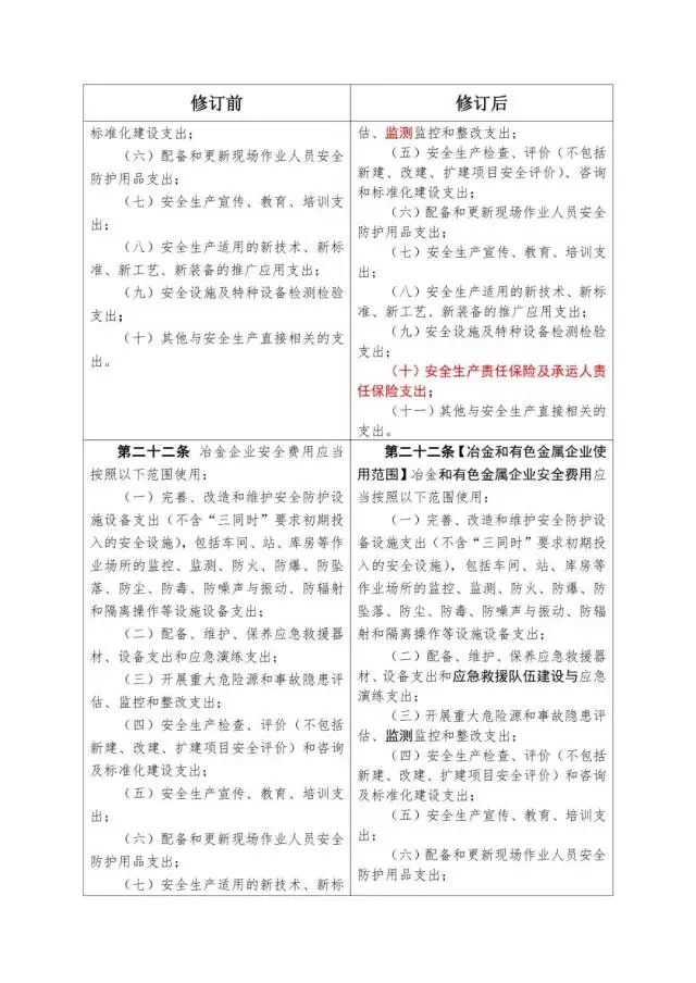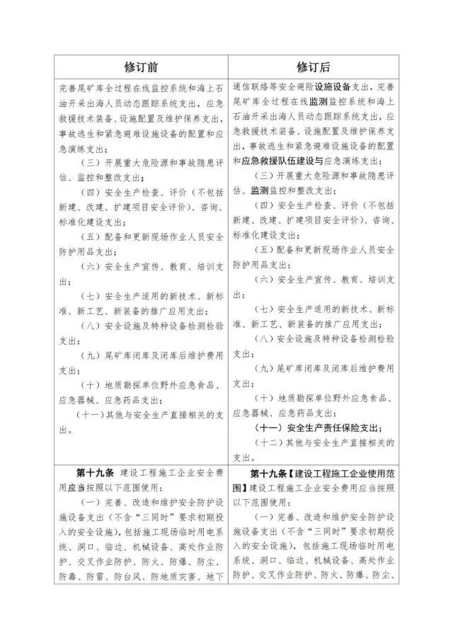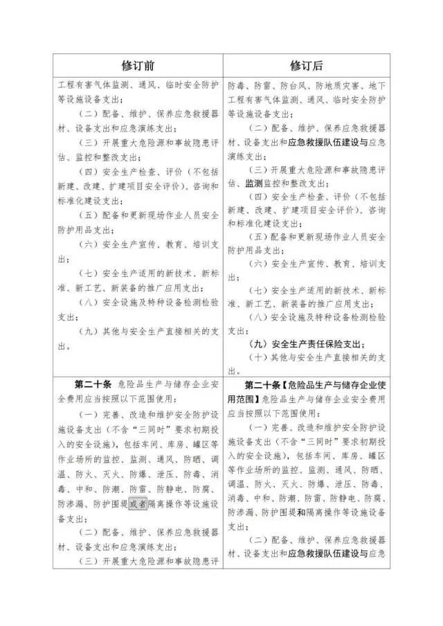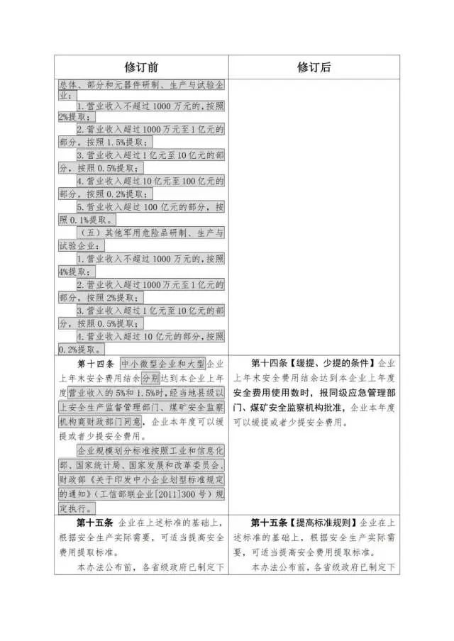 《企業(yè)安全生產(chǎn)費(fèi)用提取和使用管理辦法》修訂對照表