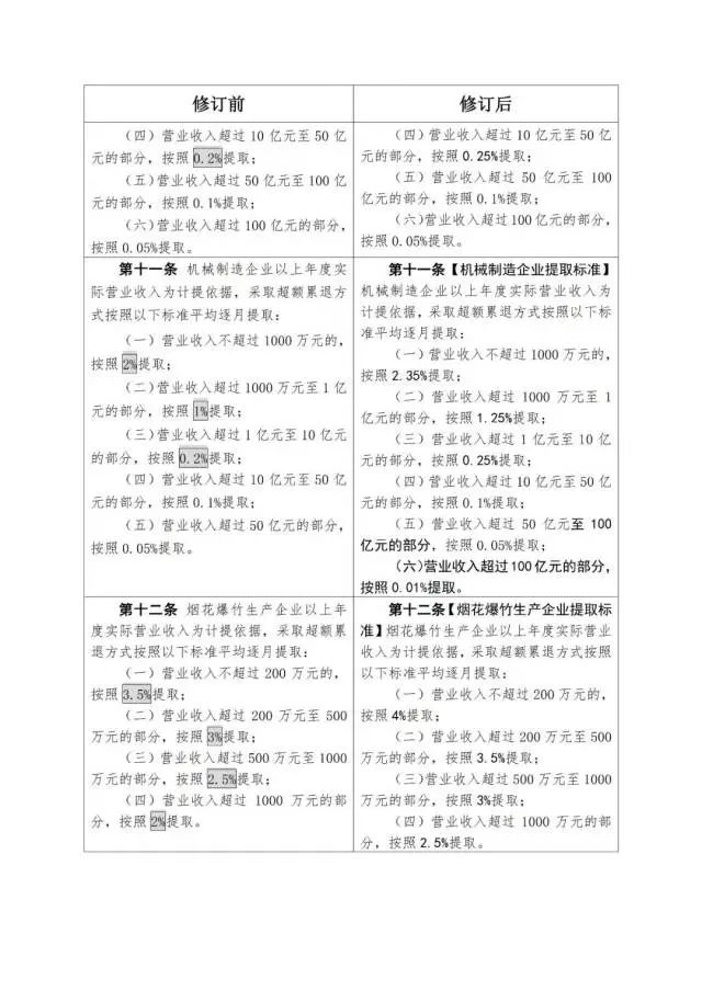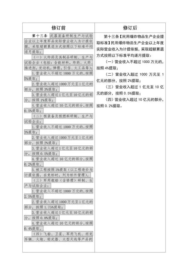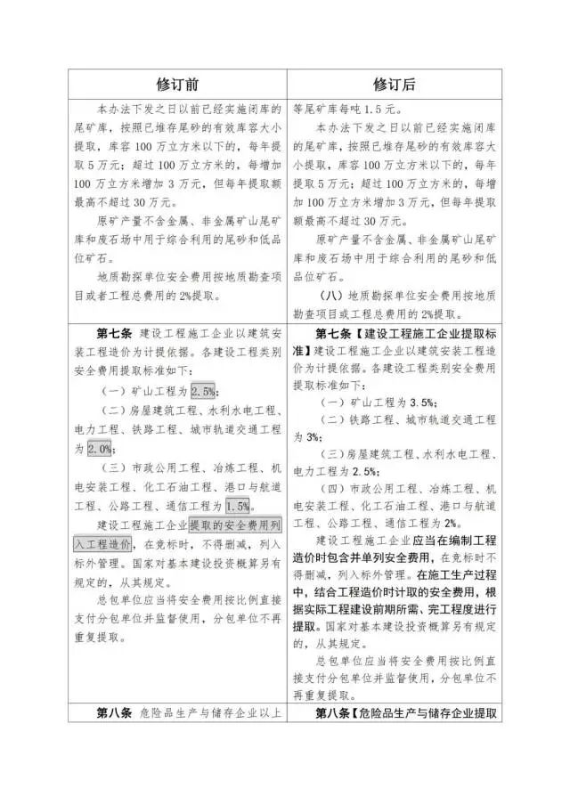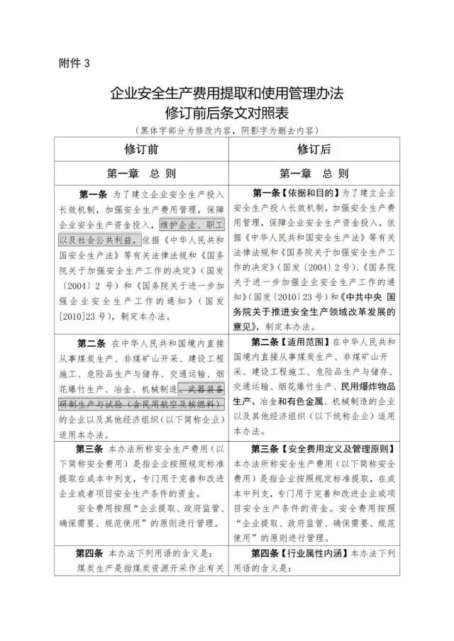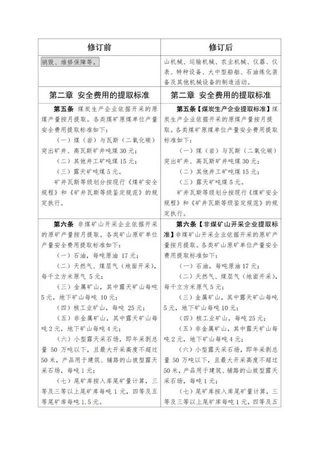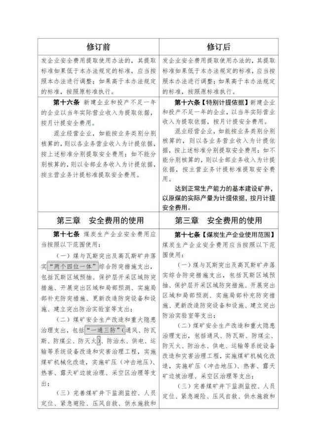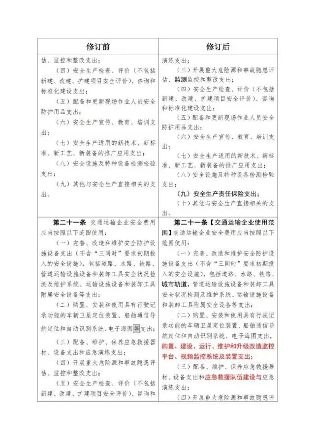 《企業(yè)安全生產(chǎn)費(fèi)用提取和使用管理辦法》修訂對照表