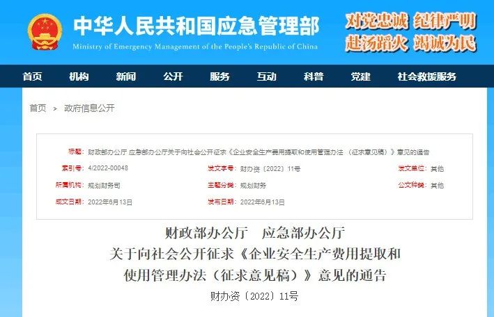 為進(jìn)一步加強(qiáng)企業(yè)安全生產(chǎn)費(fèi)用管理,6月13日,財(cái)政部會(huì)同應(yīng)急部對《企業(yè)安全生產(chǎn)費(fèi)用提取和使用管理辦法》進(jìn)行了修訂,研究起草了《企業(yè)安全生產(chǎn)費(fèi)用提取和使用管理辦法(征求意見稿)》(以下簡稱意見稿),并于7月13日前面向社會(huì)征求意見。