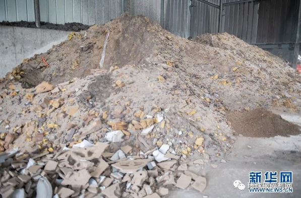 車間內,即將被破碎處理的廢砂。新華網 耿駿宇 攝