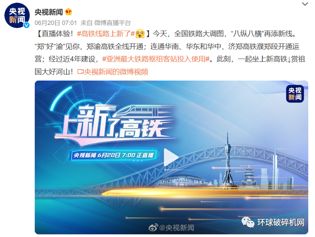 環(huán)球破碎機(jī)網(wǎng)了解,中鐵十八局集團(tuán)參與了鄭渝高鐵建設(shè),承建了鄭渝高鐵鄭州東至襄陽東段5標(biāo)