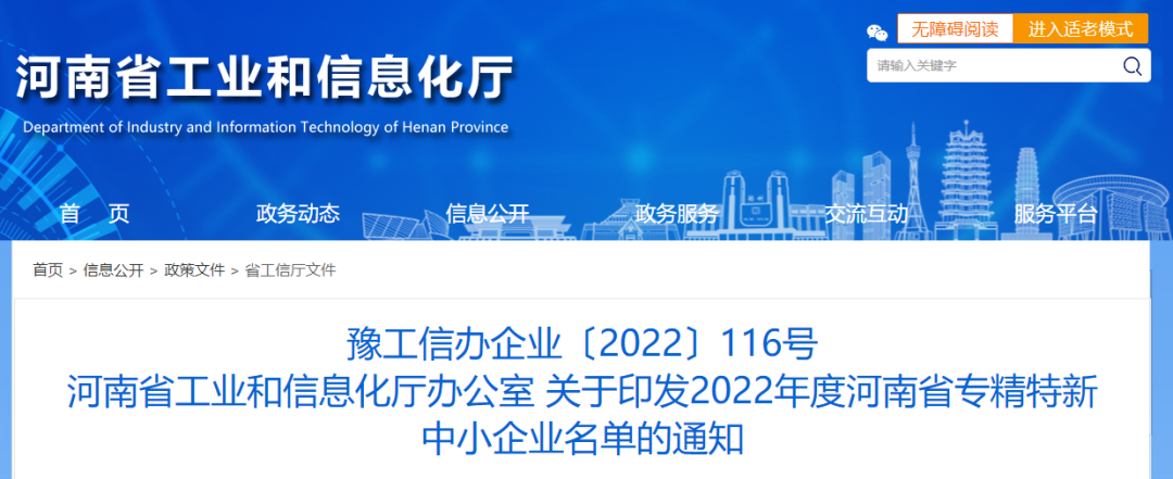 焦作千業(yè)入選2022年度河南省專(zhuān)精特新中小企業(yè)
