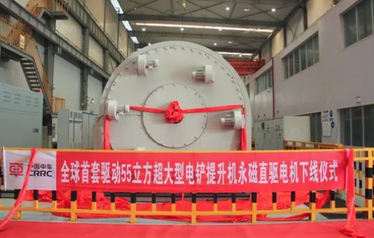 7月9日,全球首套驅動55立方超大型電鏟提升機永磁直驅電機在湖南株洲下線。該產品由中車株洲電機有限公司旗下的湖南中車尚驅電氣有限公司研制,系在全球首次實現礦用大型電鏟提升機永磁電機直接驅動,大大提升作業效率和能效水平。