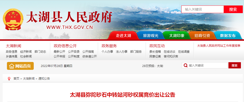 太湖縣彌陀砂石中轉站河砂權屬競價出讓公告