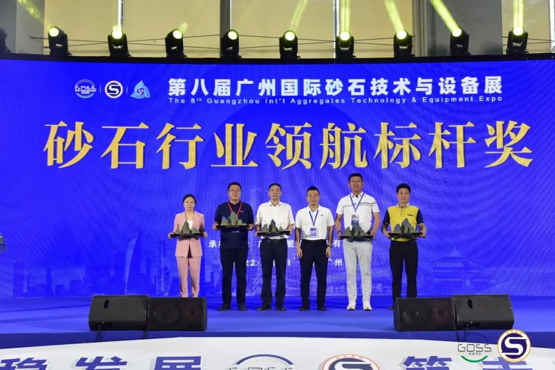 在這共同度過的八屆砂石展里,這些參展商在展會現(xiàn)場提交了成交額17.72億元的滿分成績單,為表達對眾多設備企業(yè)的支持,廣東省砂石分會會長賴志光、監(jiān)事長魏泓方為巨和工程、同力重工、廣東譽華、順達重礦、磊蒙集團、宇通礦卡、韶瑞重工、龍粵環(huán)保、浙礦重工、華寶礦機、鞍重等企業(yè)頒發(fā)了砂石行業(yè)領航標桿獎。